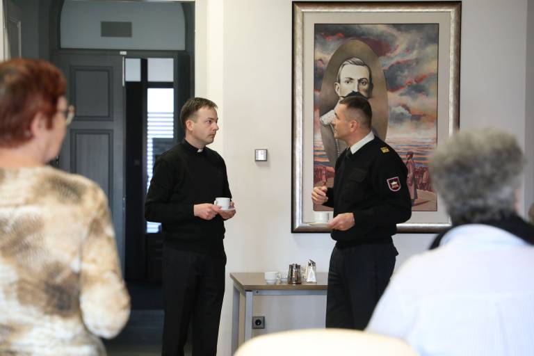 V torek, 21. februarja, so predstavnike organizatorjev dobrodelne akcije v mariborski Kadetnici sprejeli poveljnik Vojašnice generala Maistra brigadir Boštjan Baš, poveljnik Centra vojaških šol brigadir Peter Zakrajšek in namestnica vojaškega vikarja v Slovenski vojski Violeta Vladimira Mesarič, ki skrbi za duhovno oskrbo.