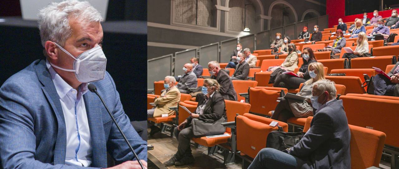 Prva točka današnje izredne seje, ki je zaradi epidemije koronavirusa izjemoma potekala v dvorani Lutkovnega gledališča Maribor, je bila obravnava revizijskega poročila o investiciji v sortirnico odpadkov, ki jo je izvedlo javno podjetje Snaga.