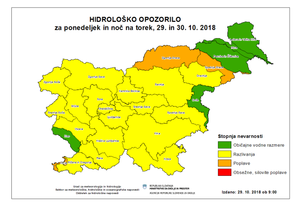 Vremenoslovce in hidrologe ob močnem vetru, ki ga napovedujejo za Notranjsko, Primorsko in Gorenjsko, skrbi naraščanje Drave. Po podatkih agencije za okolje lahko v torek popoldne Drava na meji s Slovenijo doseže pretok 1900 do 2300 kubičnih metrov na sekundo. Če se bo ta scenarij uresničil, je lahko ogroženih 107 objektov v okolici Maribora in Ptuja opozarja hidrolog Janez Polajnar.