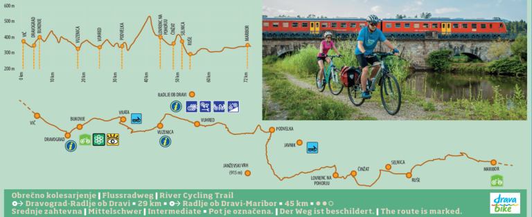 Dravska kolesarska pot, ki sicer poteka od izvira reke Drave v Italiji, prek Avstrije in se po Sloveniji nadaljuje še na Hrvaško, pri nas poteka v dolžini 145 kilometrov.