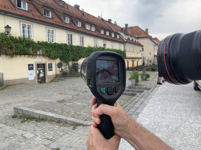 Kljub temu da je Maribor v sredo ob 12. uri zajela oblačnost in rahlo deževje, so bile temperaturne razlike med betonskimi površinami in jeklenimi konstrukcijami na eni strani ter zelenimi površinami na drugi.