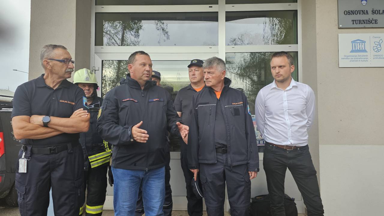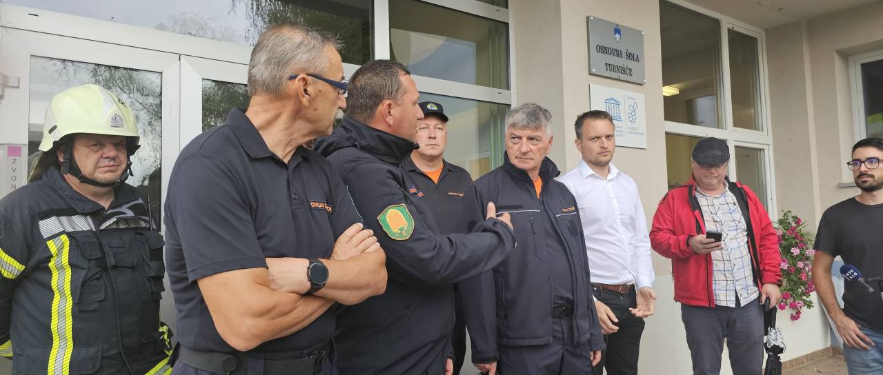 Z razmerami na terenu sta se danes popoldne seznanila državni sekretar na obrambnem ministrstvu Rudi Medved in poveljnik Civilne zaščite Republike Slovenije Srečko Šestan, in sicer najprej na Upravi Republike Slovenije za zaščito in reševanje v Murski Soboti, nato sta obiskala Osnovno šolo Turnišče, ki ji je hudo neurje točno po sedmih letih ponovno odkrilo streho.