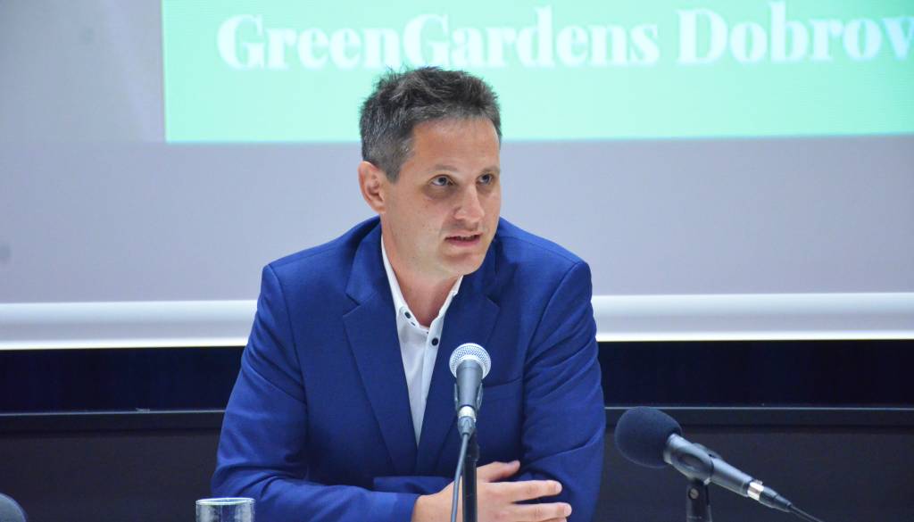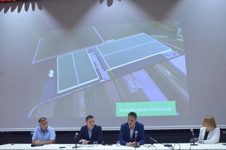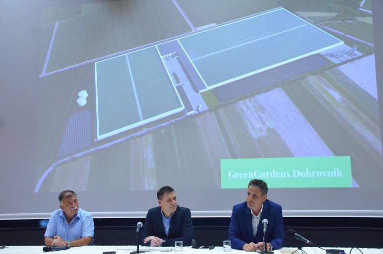 Na današnji novinarski konferenci podjetja Skrinja BB o prihajajočem razvoju največje cone v Sloveniji za pridelavo zelenjave v steklenjakih sta v Dobrovniku spregovorila partnerja projekta GreenGardens Matej Bandelj, nadzorni inženir, operativni vodja projekta ter podjetnik, ki se ukvarja z razvojem nepremičnin, in Gregor Počivavšek, vodja mednarodnih kmetijskih projektov.