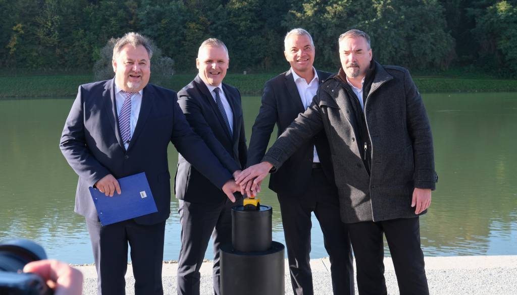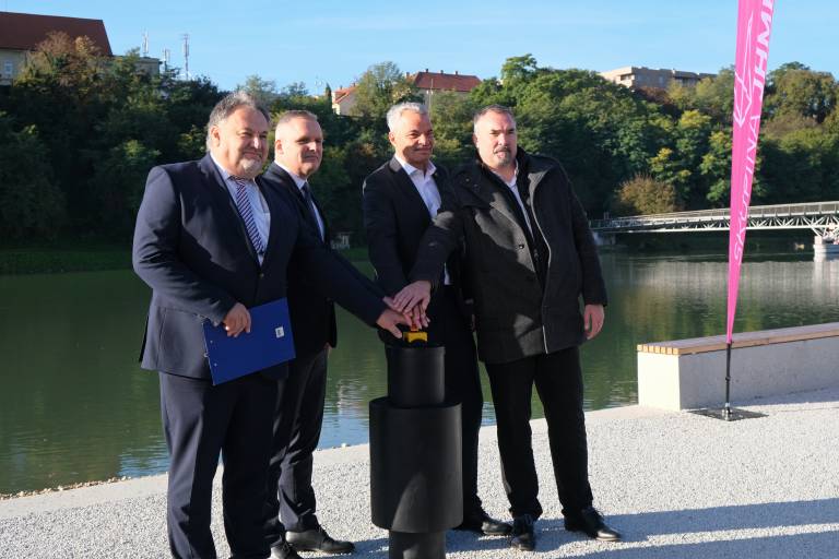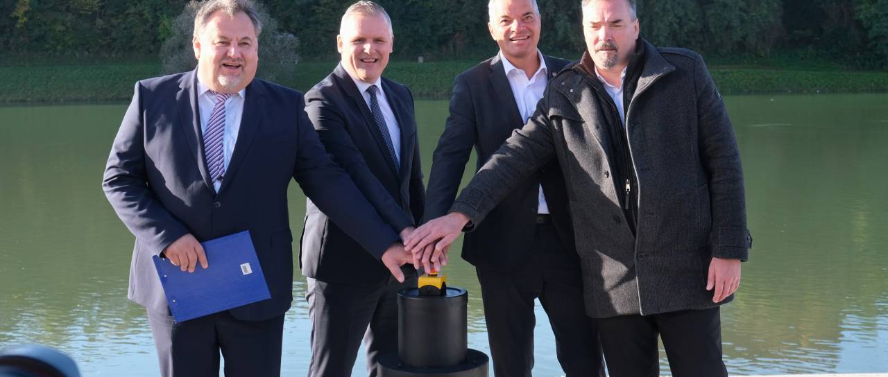 S simboličnim pritiskom na gumb so minister, mariborski župan Aleksander Saša Arsenovič, direktor Javnega holdinga Maribor Andrej Rihter in direktor Energetike Maribor Jože Hebar uradno pognali delovanje visokotemperaturne toplotne črpalke (VTČ) Pristan.