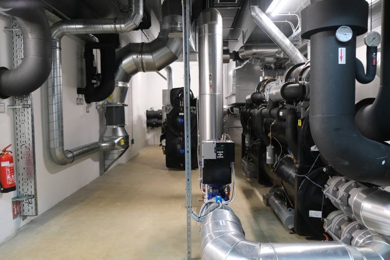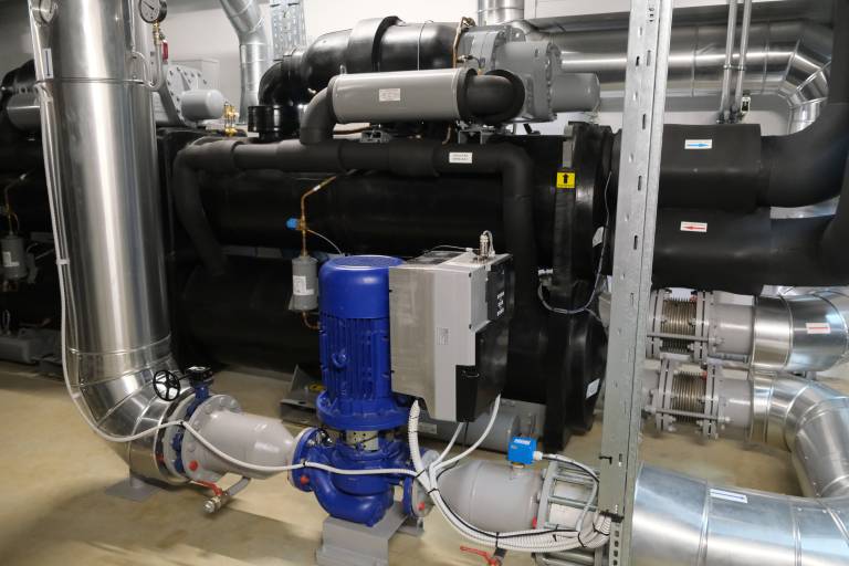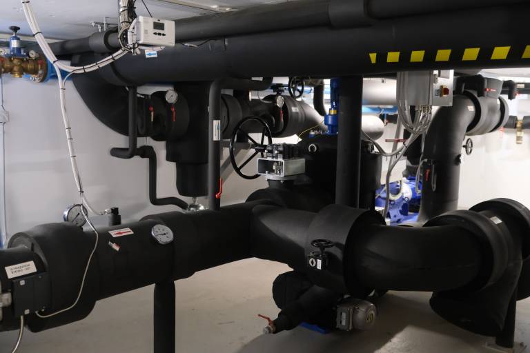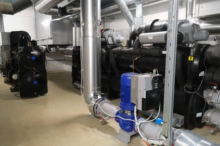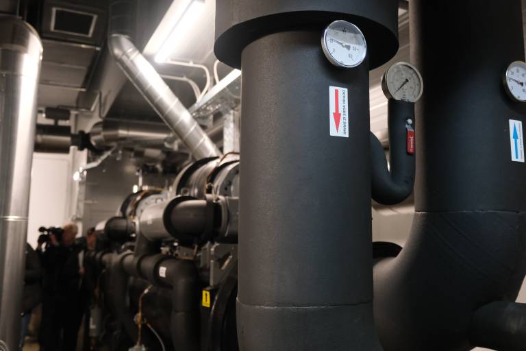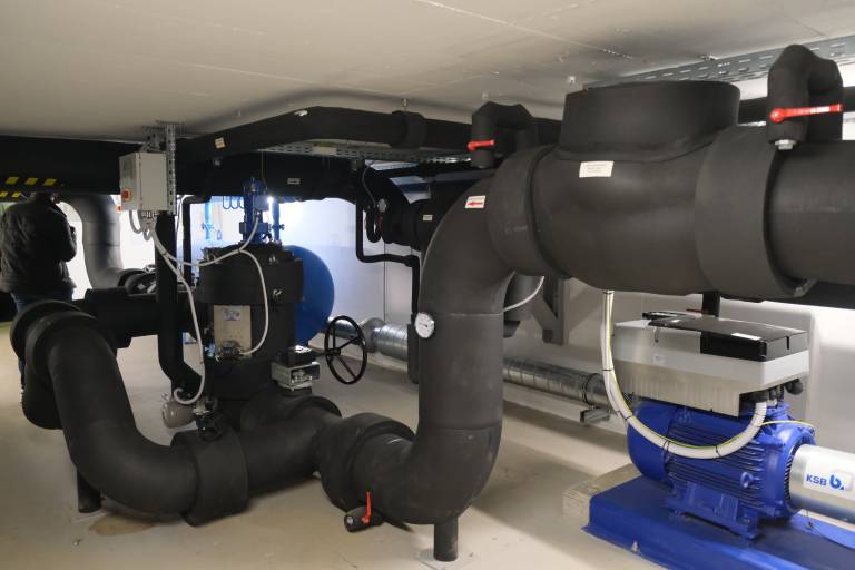 Toplotna črpalka zagotavlja 2 MW nazivne toplotne moči in za svoje delovanje izkorišča toploto reke Drave.