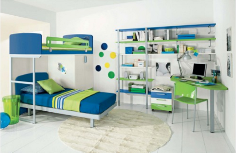 - Pomembno je tudi zagotoviti dodatni prostor za shranjevanje šolskih in drugih potrebščin, kot so predalčniki pod posteljo ali pisalno mizo, tabureji, skriti predalniki, knjižne police ipd.