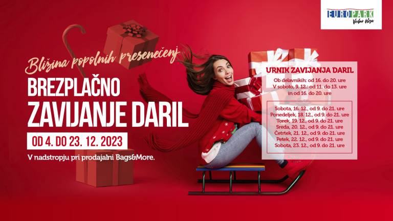 Več informacij in urnik zavijanja daril je na voljo na https://www.europark.si/.../brezplacno-zavijanje-daril.