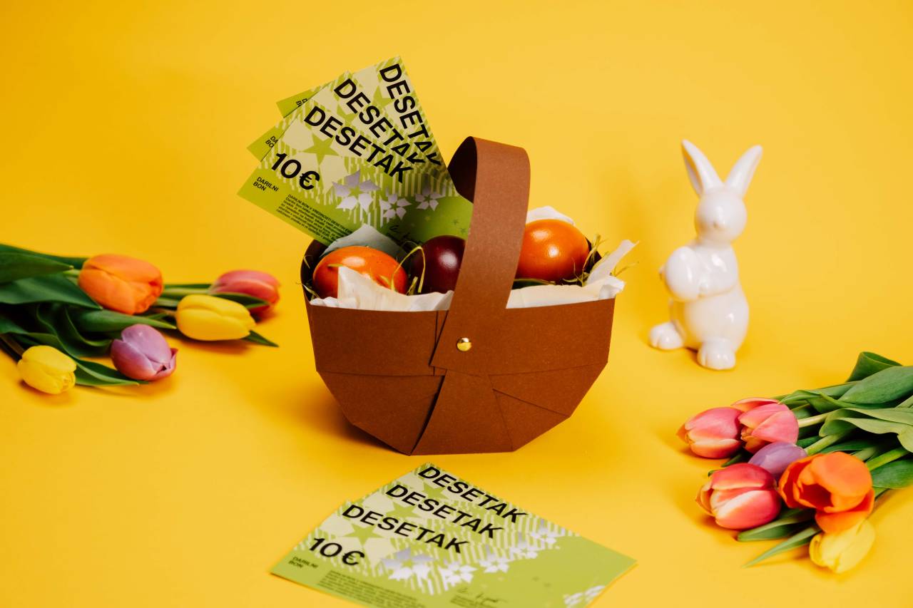 Med priljubljenimi darili so velikonočna jajca in zajčki, odlična izbira pa so lahko tudi darilni boni, s katerimi obdarovancem lahko uresničite tiste najbolj skrite želje. Darilne bone Desetak si lahko priskrbite pri Europarkovi info točki ali jih preprosto naročite preko spleta na www.desetak.si.