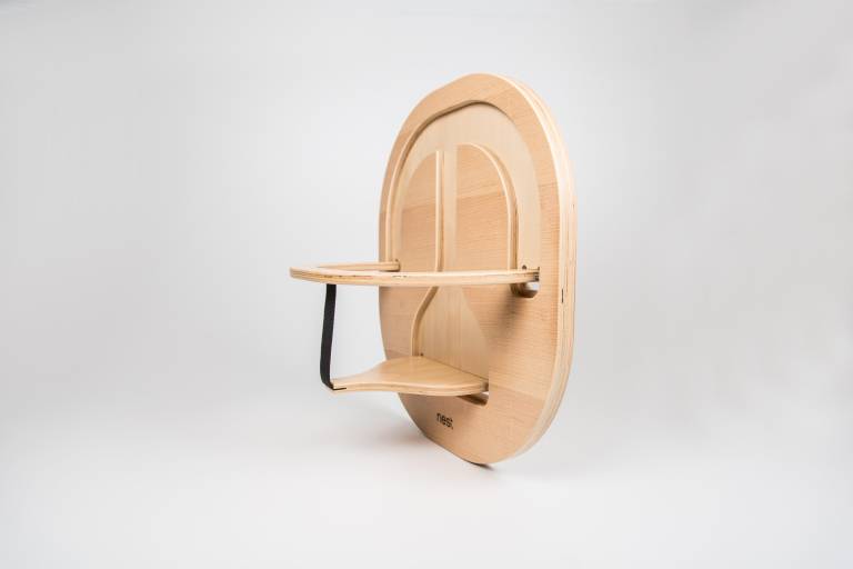 Gre za zložljiv otroški stolček slovenskega porekla, ki je udoben ter varen za malčke, služi pa kot odličen pripomoček v ozkih prostorih.