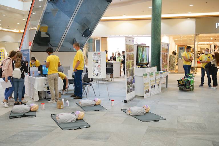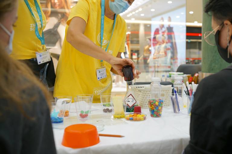 Organizatorji so v največjem nakupovalnem središču severovzhodne Slovenije pripravili številne interaktivne postojanke, na katerih so mladim obiskovalcem predstavili delo raziskovalcev in najnovejše dosežke znanosti.