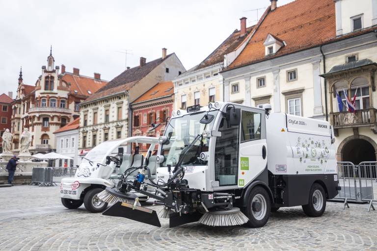 Marprom je predstavil električni vozili Maister, ki brezplačno prevažata potnike v mestnem središču, Snaga Maribor pa novi pometač na električni pogon, ki čisti mestne ulice.
