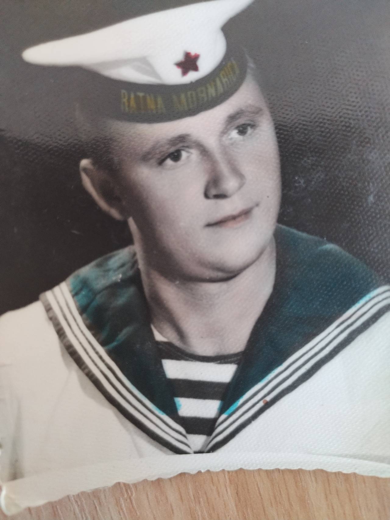 Ko je bil star 23 let, se je pridružil vojni mornarici v Puli, kjer je delal kot kuhar. Ko nam to pripoveduje vmes, potarna, da je najbolj delal ravno takrat, ko so drugi bili drugi, ki so se učili za oficirje, prosti.