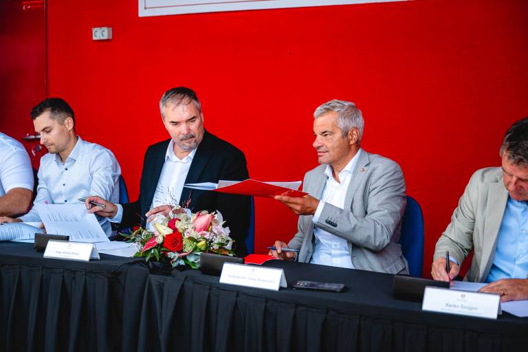 Pred prostori Nogometnega kluba Kovinar na Ptujski cesti 84 je danes potekal podpis pisma o nameri za izgradnjo Športnega parka Tezno.