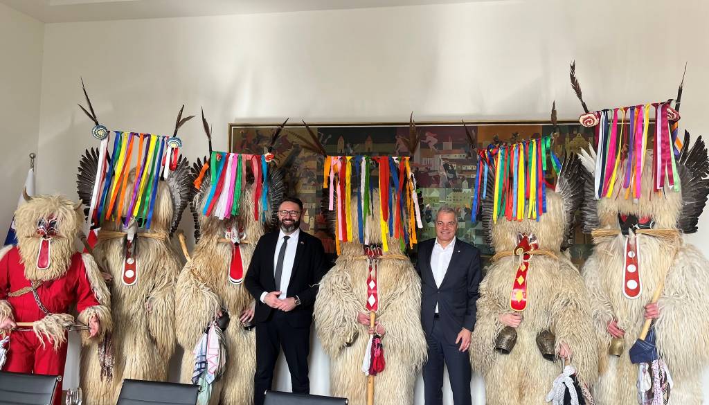 Zvoki kurentovih zvoncev so močno odmevali po občinskih hodnikih, kar je pritegnilo pozornost črnogorskega veleposlanika.