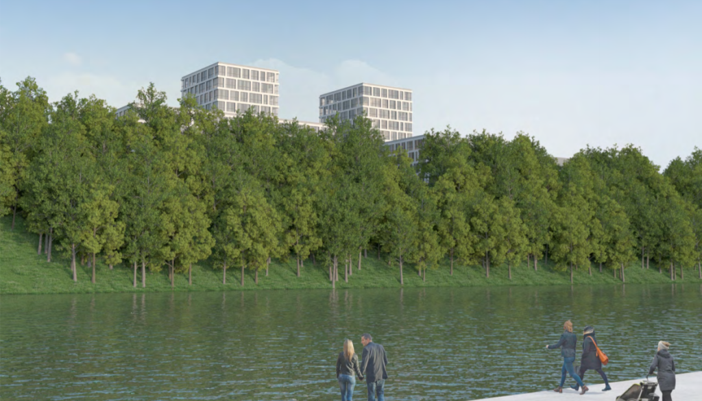 Ideja vključuje tudi okoli 300 parkirnih mest v kletni etaži in garaži - 225 parkirnih mest za stanovalce, 60 za javni program- in 24 izven objekta.