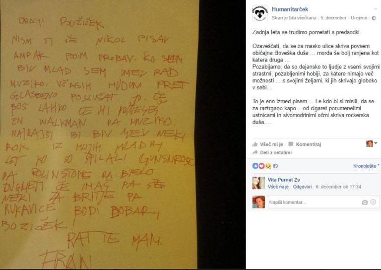 »Odzive bi lahko strnili v preprostih nekaj besed - presenečenje, hvaležnost, tudi kakšna solzica. Drugo leto upamo, da se nam pridruži še več zavetišč in svoje želje na papir izlije še več brezdomcev,« še pravi Kosova, ki prilaga še pismo božičku enega velikega ljubitelja starega dobrega rocka.