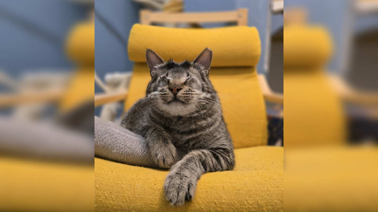 Kljub temi, v kateri živi vse življenje, Čarli ne pozna žalosti. Njegova duša sije svetleje kot marsikatera druga. Je igriv, prijazen in neizmerno ljubezniv muc, ki si zasluži pravi dom.