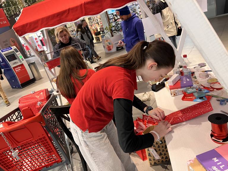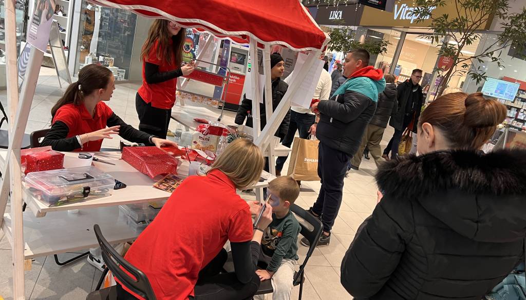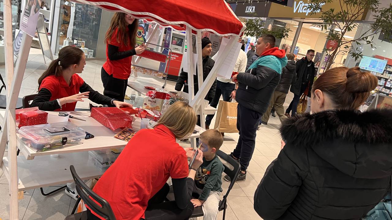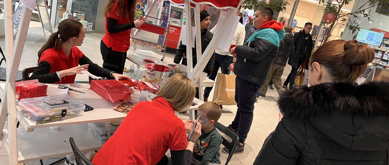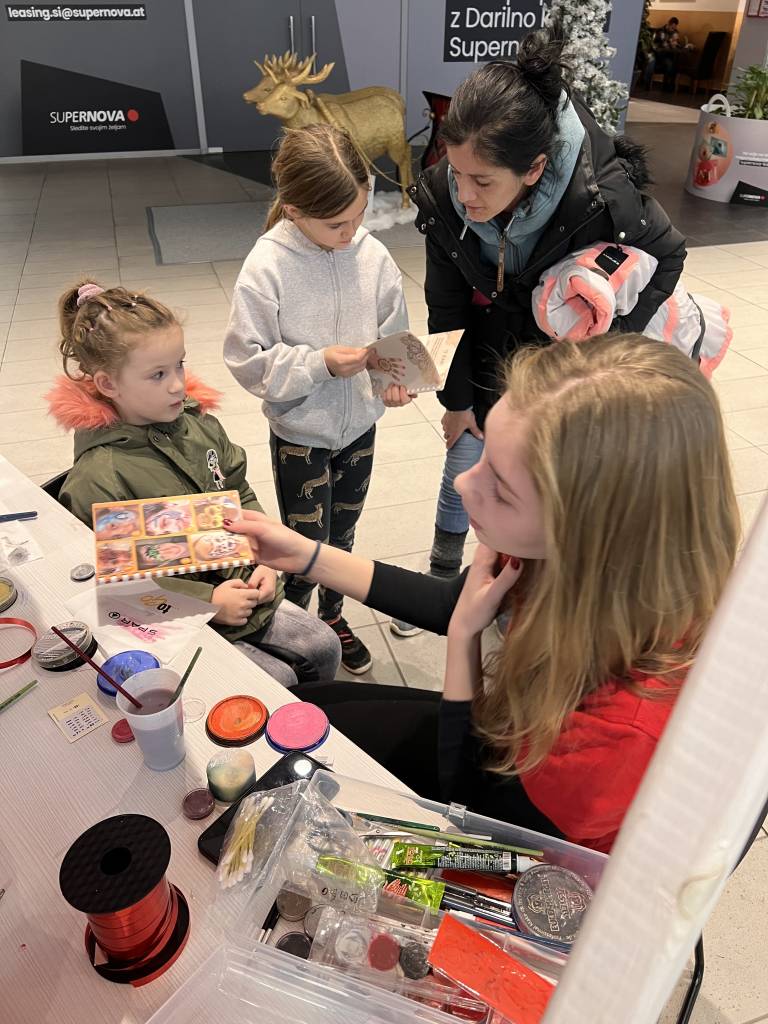 Vzdušje je bilo polno smeha, ustvarjalnosti in prazničnega duha, saj so se ustvarjale krasne poslikave s kano, obiskovalci pa so bili deležni tudi brezplačnega zavijanja daril.