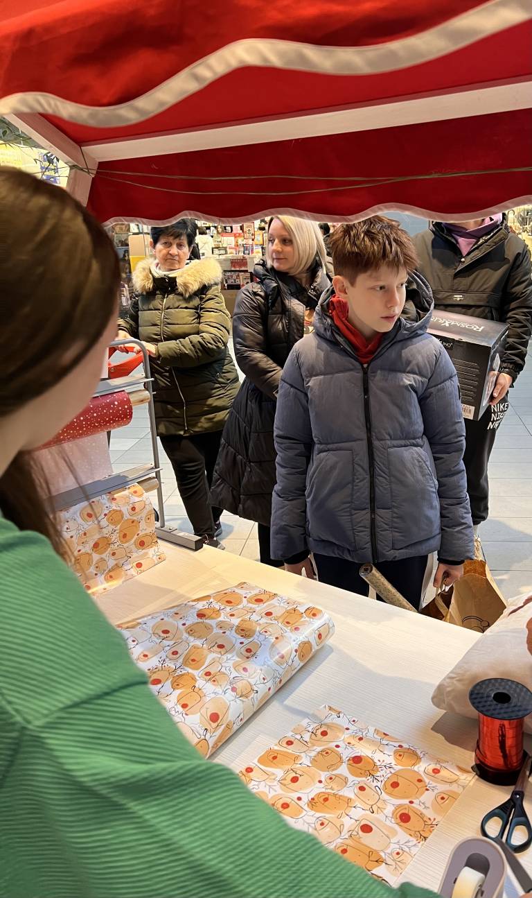 Posebno pozornost je pritegnila brezplačna storitev zavijanja daril, ki je bila izjemno priljubljena.