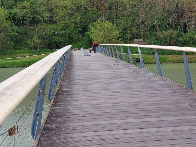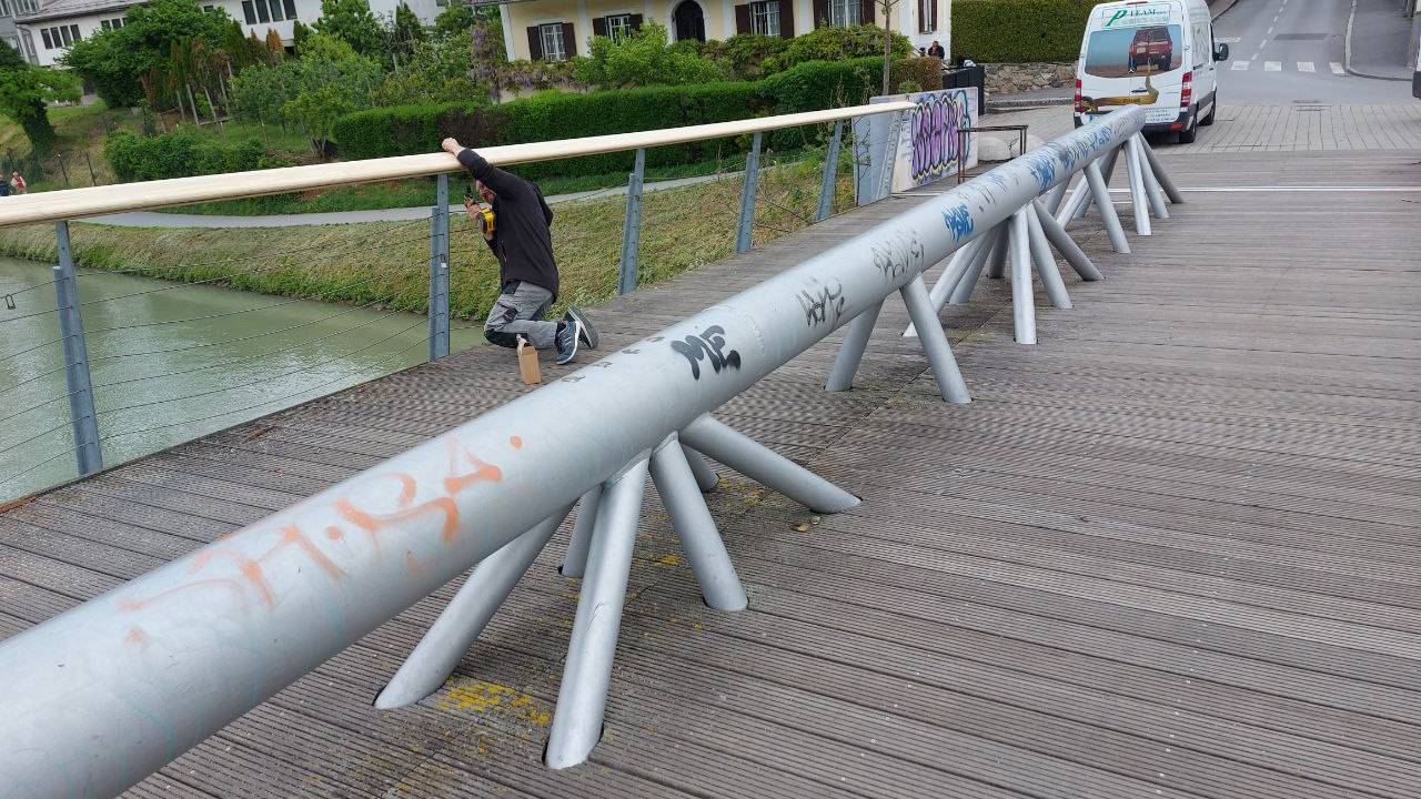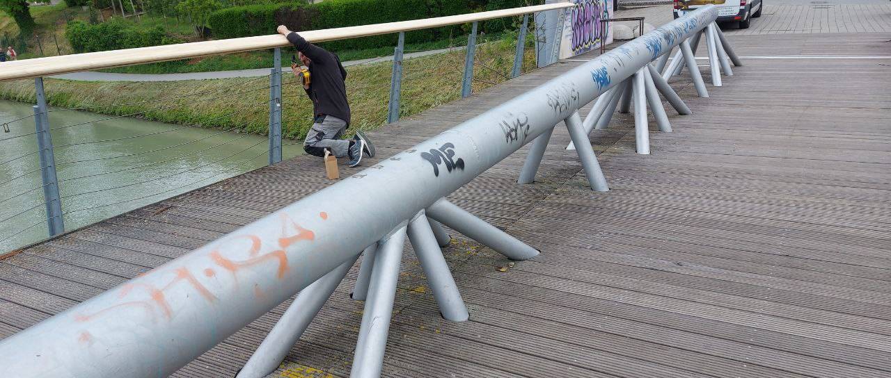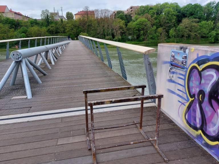 Barva se lušči tudi iz jeklene konstrukcije, ta je tudi pogosta tarča vandalov in popisana z grafiti. V tem tednu je po dolgem čakanju Studenška brv le dočakala začetek prenove.