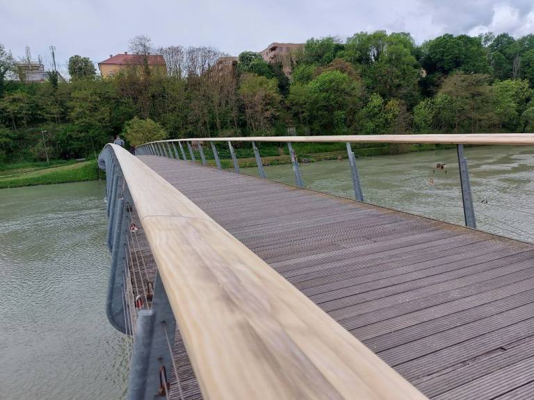 Kot so takrat pojasnili na občini, bi se s tem preveč poseglo v prvotno zasnovo. Brv mora tudi po obnovi ostati v takšni zasnovi, kot je zdaj, torej z lesenim ročajem.