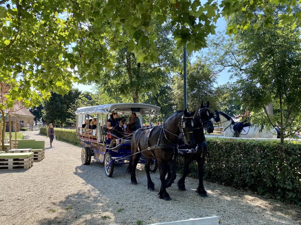 Električna kočija v Raziskovalno izobraževalnem središču Dvorec Rakičan sprejme 12 oseb, z njo je bilo izvedenih že več testnih in promocijskih voženj. Omogoča pa tudi dostop osebam na invalidskem vozičku