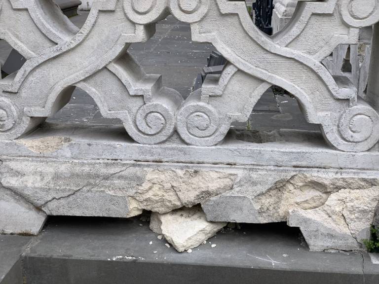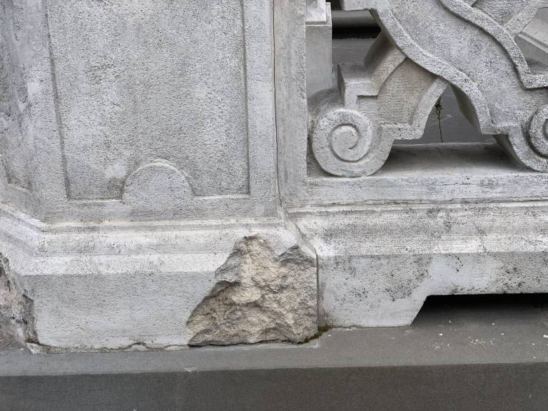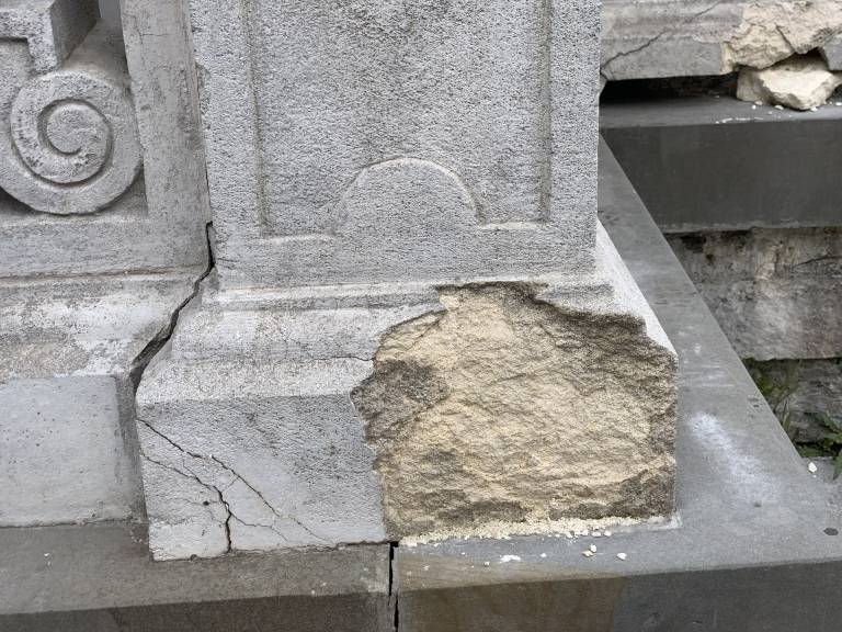 Na občini pojasnjujejo, da so ograja in stopnice pred Kužnim znamenjem iz peščenjaka, zato obstaja možnost, da so se poškodbe pojavile zaradi naravnih vplivov.