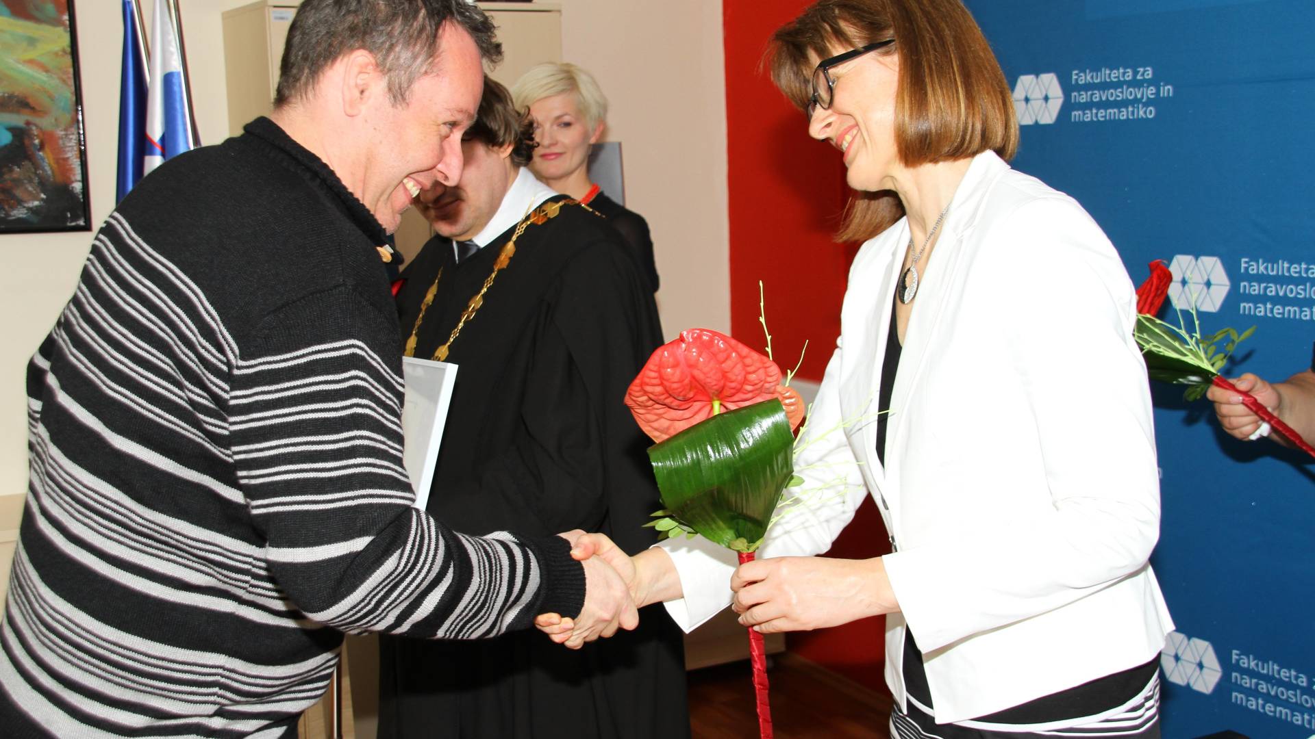 Priznanje visokošolskim učiteljem za izjemne dosežke na izobraževalnem področju je prejel izred. prof. dr. Iztok Banič za odlična predavanja, promocijo fakultete, zgodnje usmerjanje študentov v raziskovalno delo in pogumno delovanje v okviru Predmetne maturitetne komisije za matematiko.