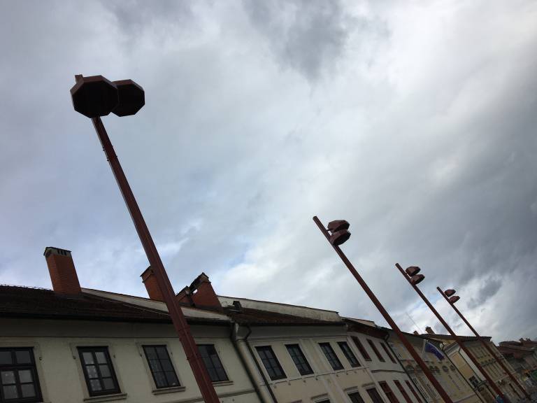 Reakcije nekaterih, ki jim pojavnost ni 'všeč' ali se jim zdijo svetila predimenzionirana, so zato lahko tudi upravičene, a so tudi v soodvisnosti od točke opazovanja. Ko svetila opazuješ v zornem kotu vzdolž trga, občutiš gostoto nanizanja in s tem močan element prostora. Ko jih opazuješ s strani Rotovža, pa se porazgubijo.