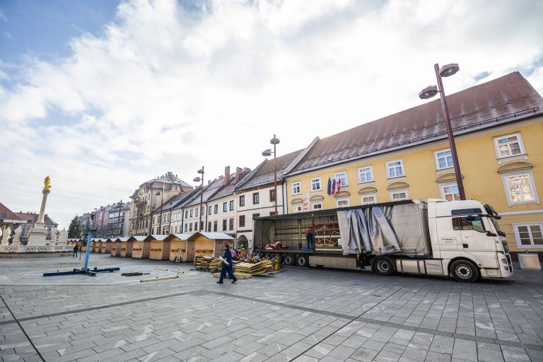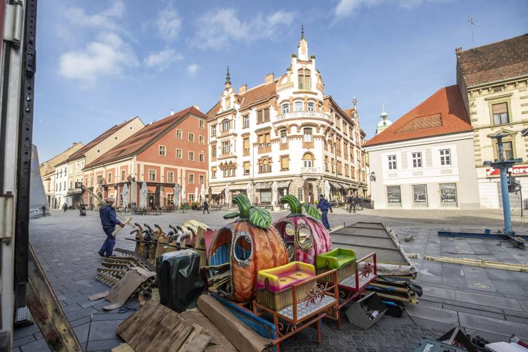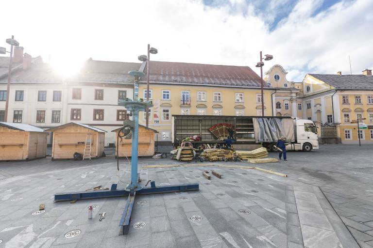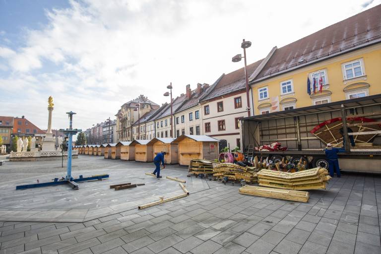 Na Glavnem trgu bo stala darilna tržnica in letošnja novost – božični vrtiljak, ki ga pravkar postavljajo.