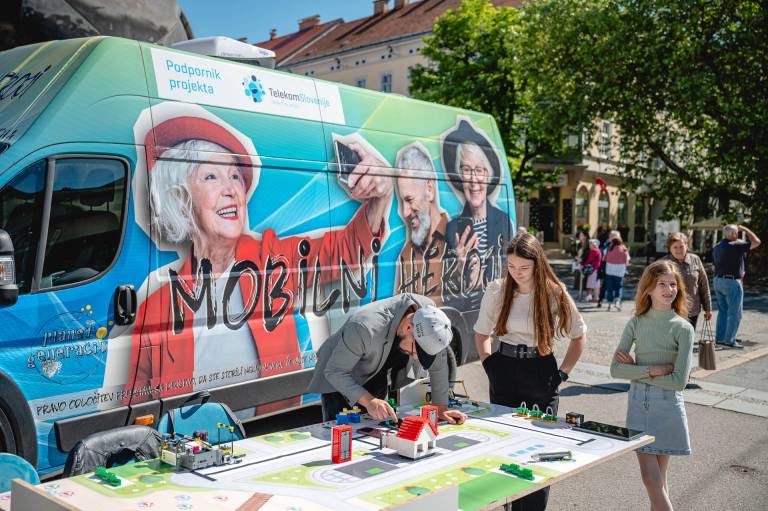 Poleg ministrice so predstavniki Ljudske univerze Velenje na praktične načine in z mobilno učilnico prikazali krepitve digitalnih kompetenc med starejšimi od 55 let v okviru projekta Mobilni heroji.