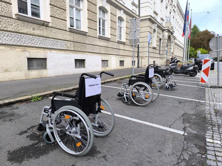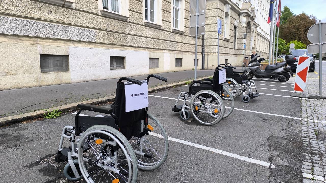 Parkirna mesta pred Mestno občino Maribor so danes zasedli vozički. Gre za simbolno akcijo ob Dnevu mobilnosti invalidov, s katero želijo organizatorji opozoriti na pogosto težavo – neupravičeno parkiranje na mestih, ki so namenjena invalidom.