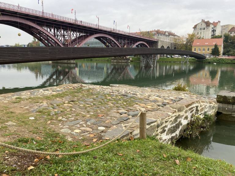 Kot so pojasnili na Mestni občini Maribor, gre dejansko za ostanke starega lesenega mostu, ki je povezoval Lent z magdalenskim predmestjem še pred izgradnjo današnjega Glavnega mostu (1913).