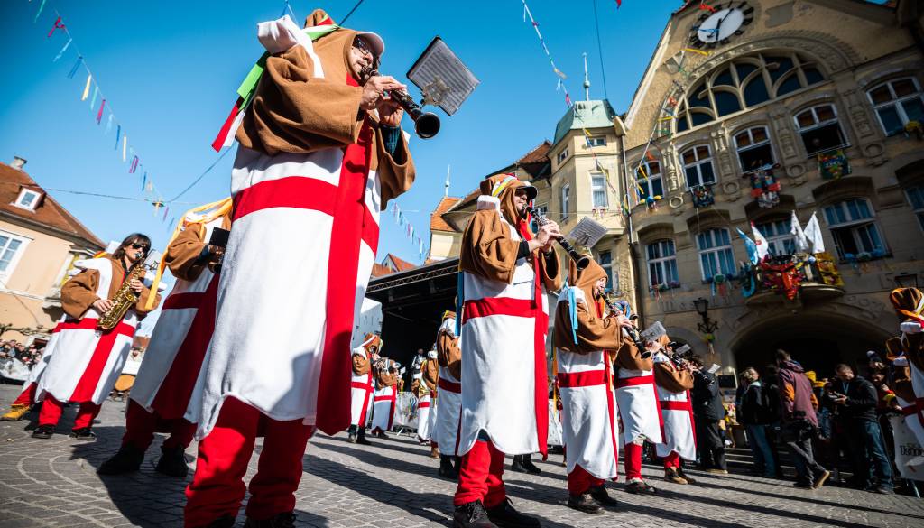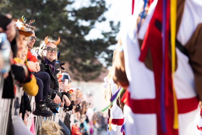 Nedelja je vsakoletni vrhunec Kurentovanja, ko mesto preplavijo namaskirani obiskovalci in velike skupine zabavnih in etnografskih likov.