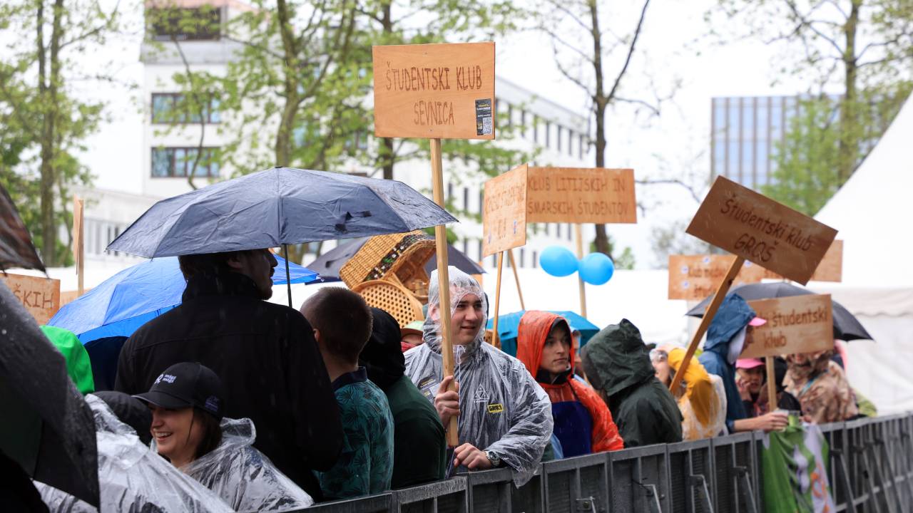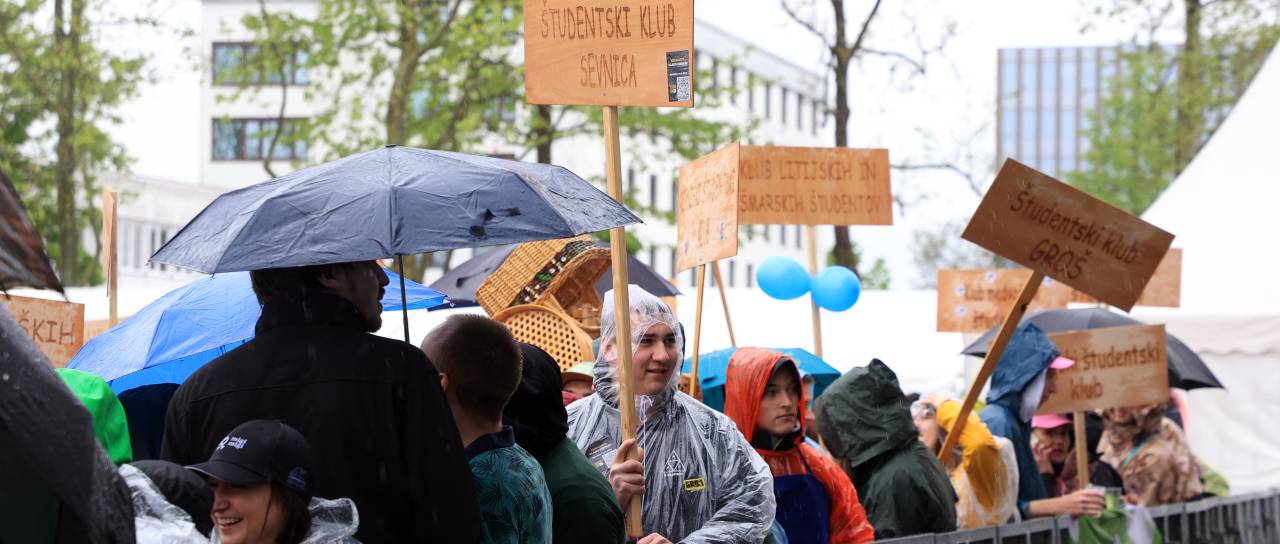 Ker jo je prireditvi zagodlo kislo vreme, pa si lahko študentje na lokaciji, pri info točki, priskrbijo tudi pelerine po nizki ceni.