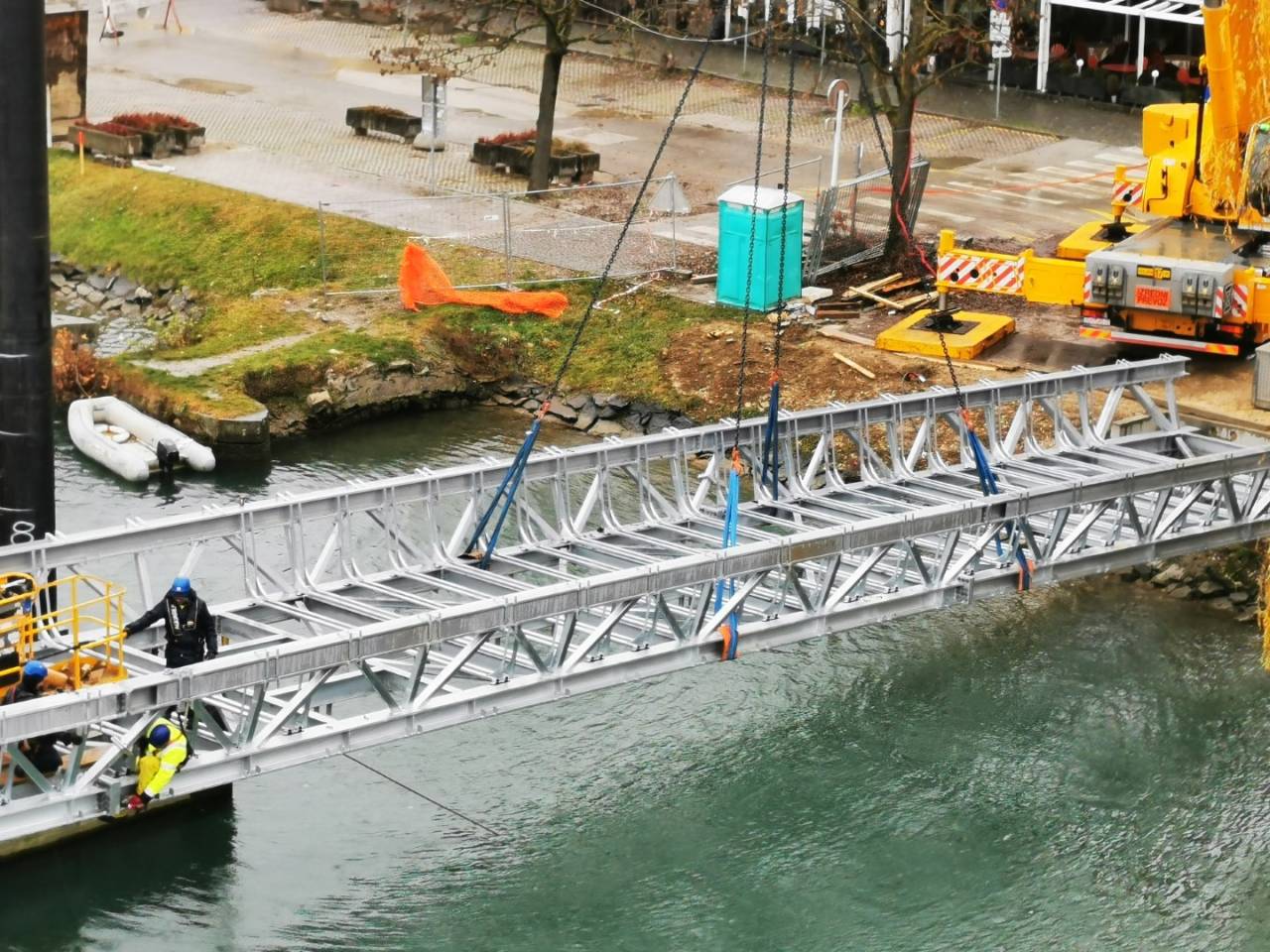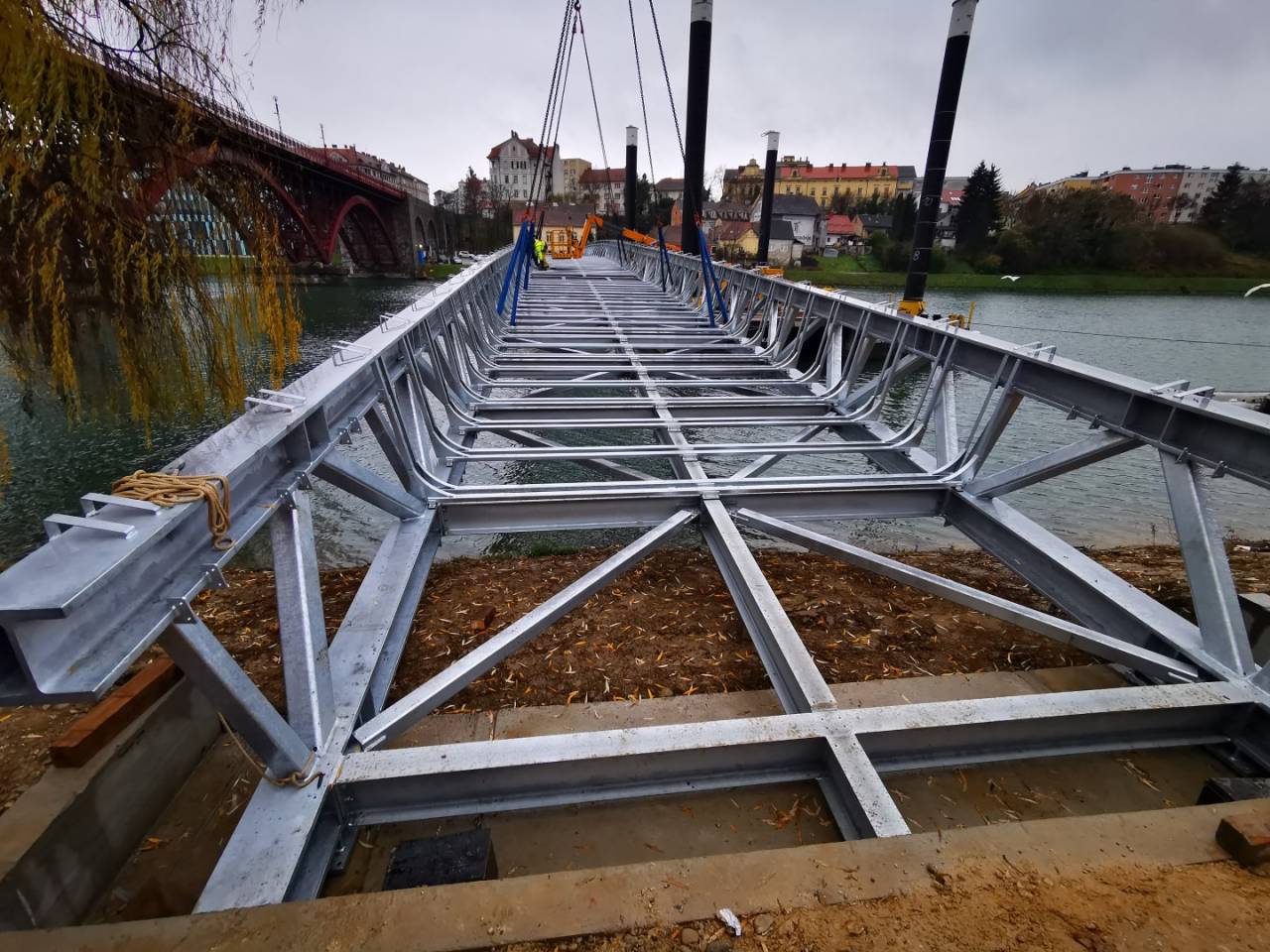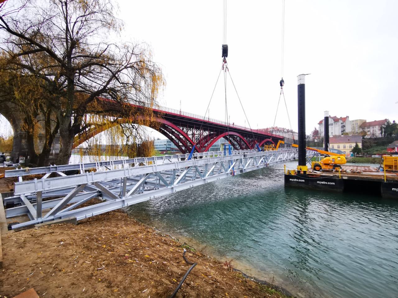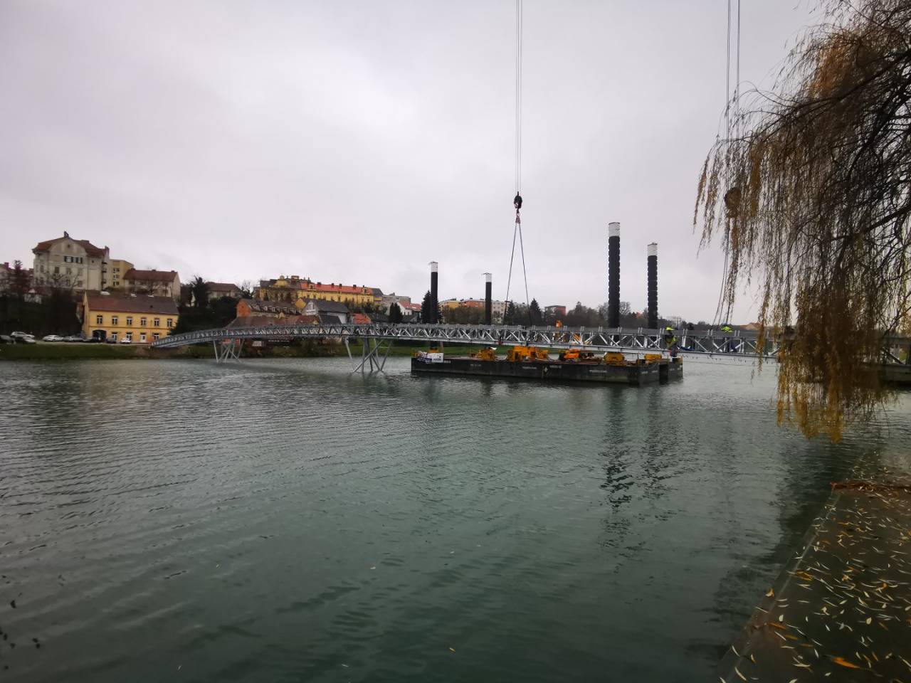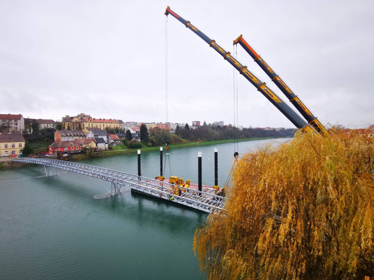 Včeraj je prišlo do velikega napredka pri delih, ki jih na Dravi izvaja podjetje Makro 5 gradnje. Novonastajajoča brv Lent - Tabor je namreč povezala oba bregova.