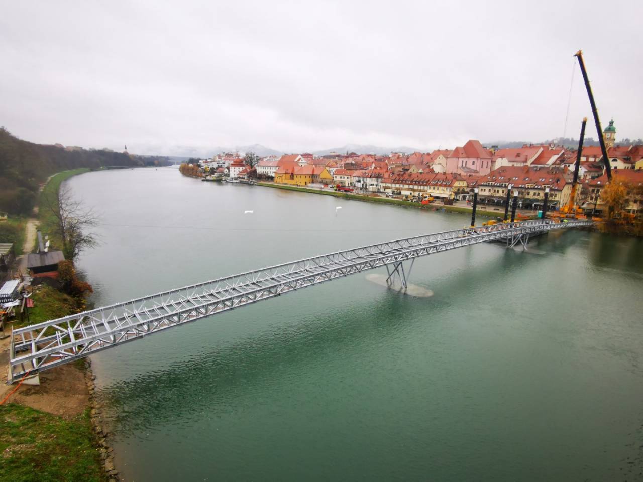 Dela pa na mariborskem Lentu hitro napredujejo, saj je prav včeraj nastajajoča brv dosegla oba bregova Drave ter s tem povezala Lent in spodnji del Tabora.