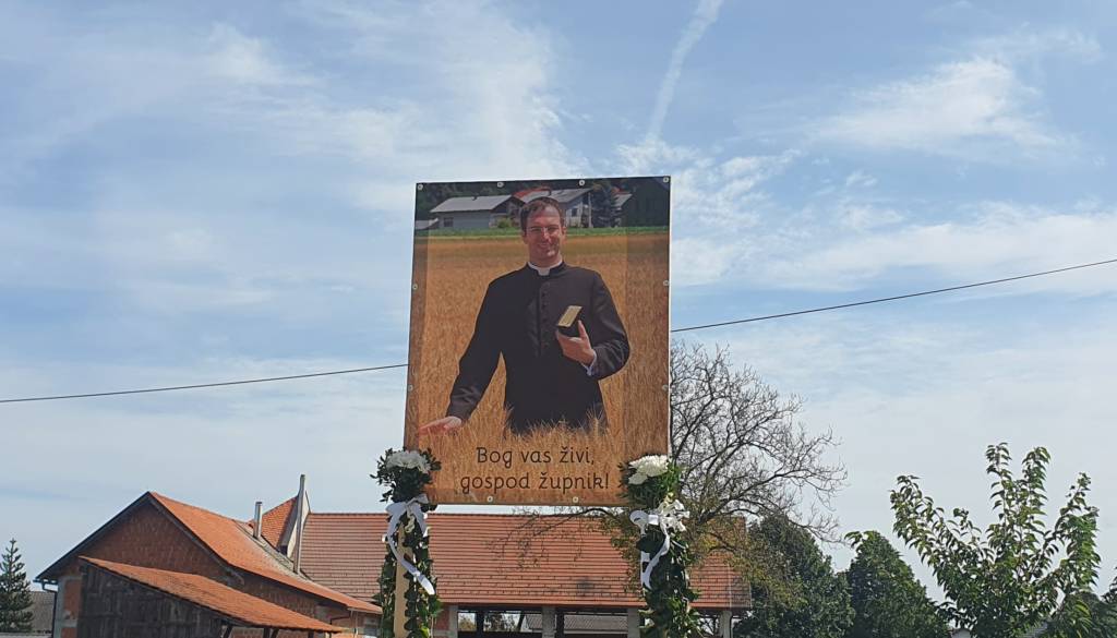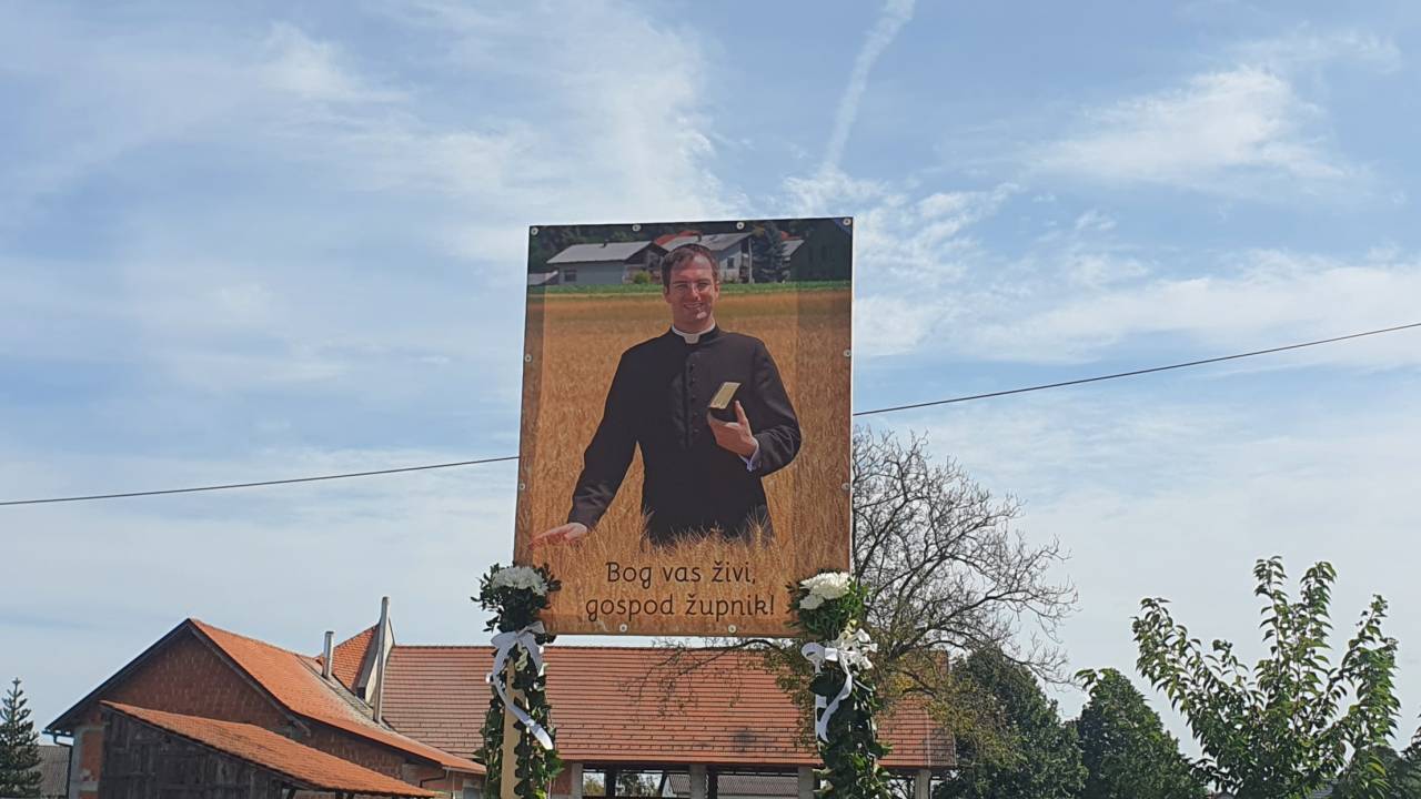 Duhovniku čestitali kar na panoju: »Bog vas živi, gospod župnik!«