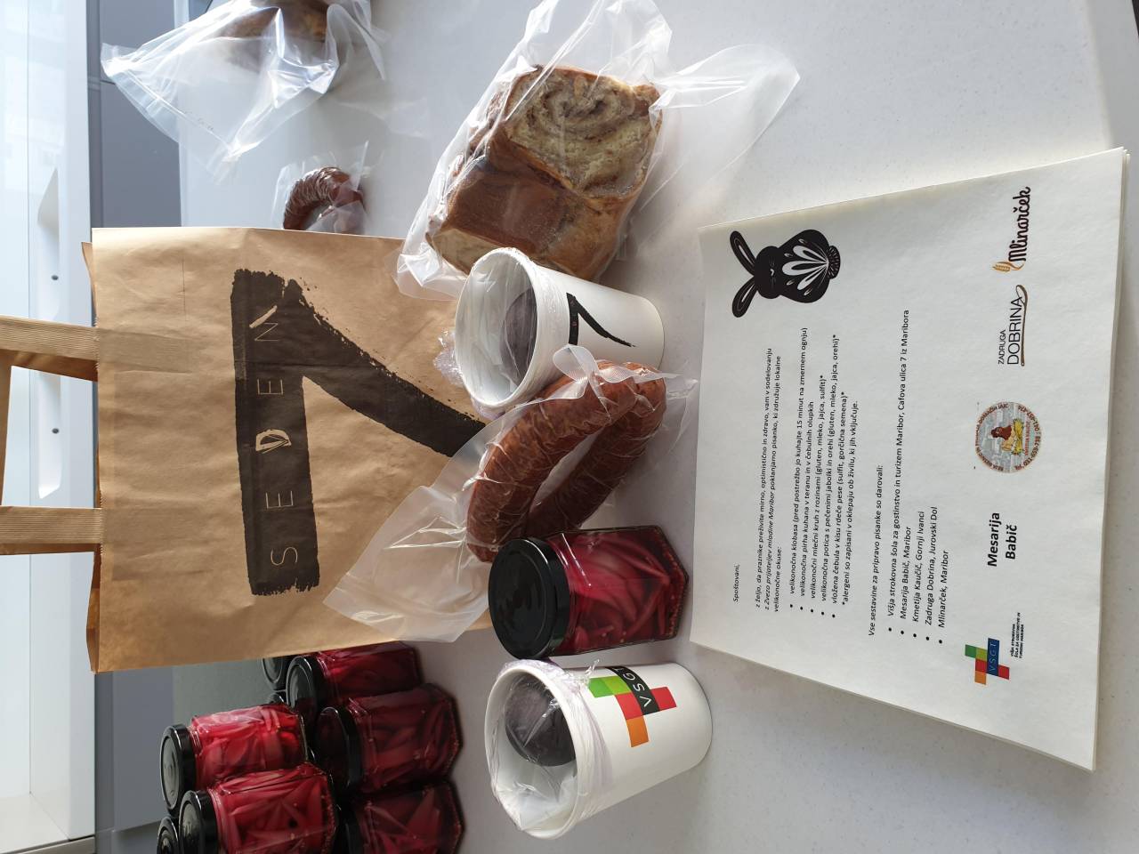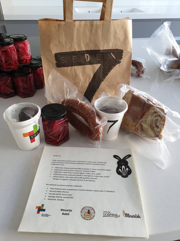 Mesarija Babič, Kmetija Kavčič, Zadruga Dobrina in Mlinarček iz Maribora so prispevali sestavine, iz katerih so Sebastjan, Tomi in Tadej ali, kot so sporočili iz šole, »kulinarični škratje« Višje strokovne šole za gostinstvo in turizem Maribor pod vodstvom Mojce Polak pripravili velikonočno klobaso, velikonočne pirhe, kuhane v teranu in čebulnih olupkih, velikonočno potico z orehi in jabolki, vloženo čebulo v kisu rdeče pese, in velikonočni kruh z rozinami.