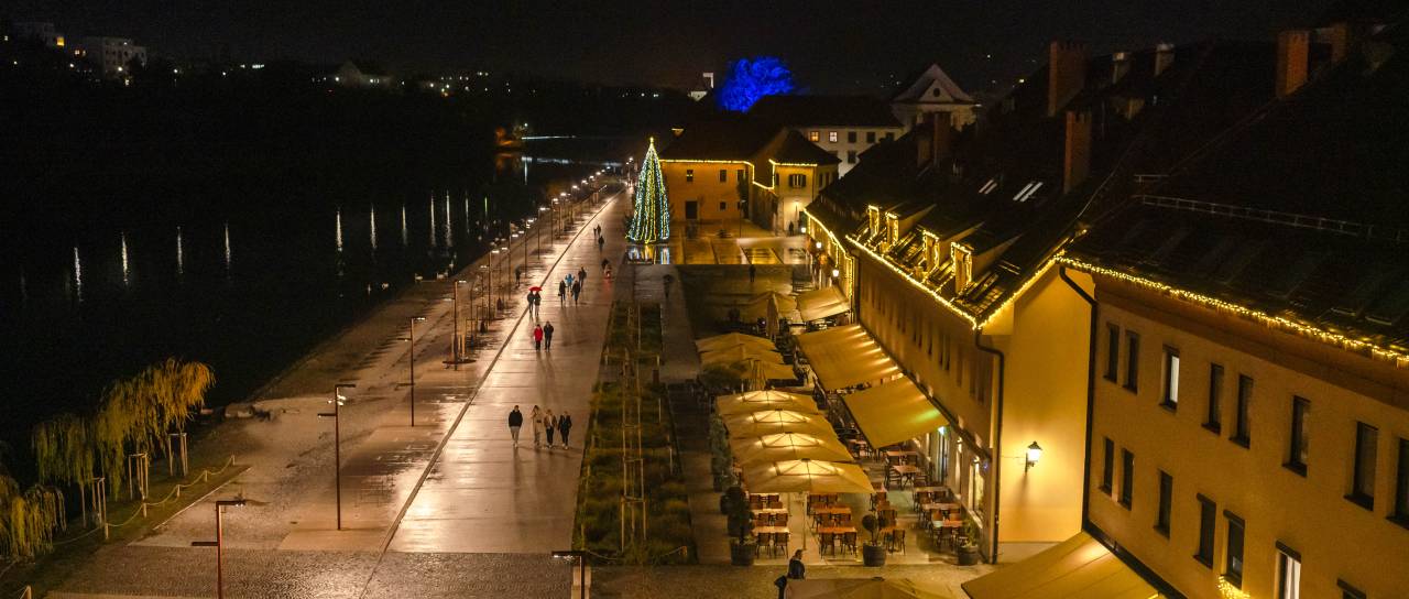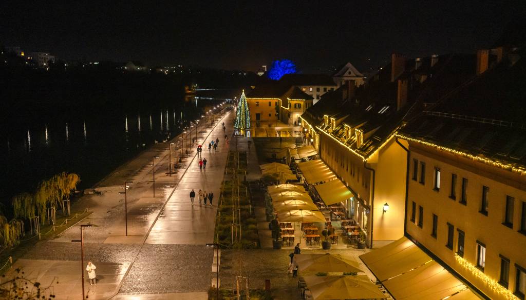 Ponovno vabijo obiskovalce z velikim panoramskim kolesom na Glavnem trgu, letos pa je praznično osvetljen tudi nedavno obnovljeni Lent. Prvič so osvetlili tudi Poštno ulico.