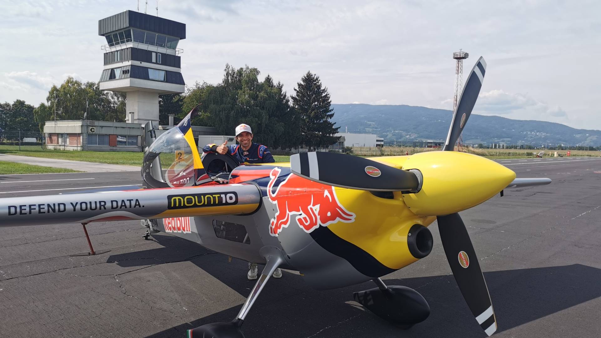 Znani akrobatski pilot se je na poti iz Istanbula, kjer je postavil Guinnessov rekord z letom v tunelu, ustavil še na letališču v Mariboru.