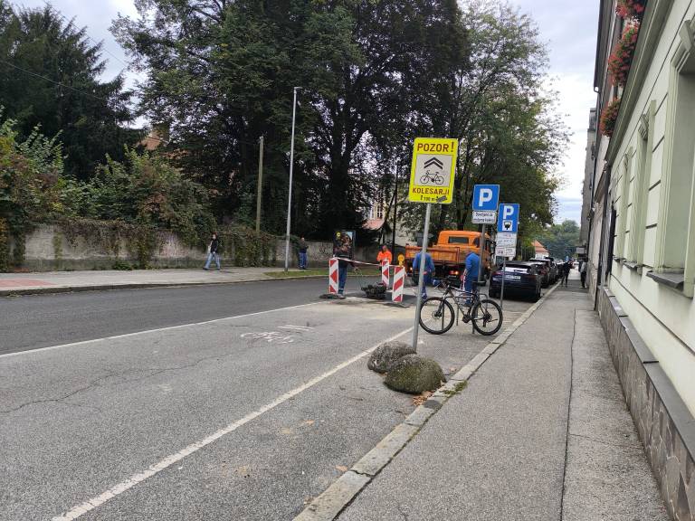 Danes je bilo območje tako že asfaltirano, ovire pa zaenkrat še ostajajo.