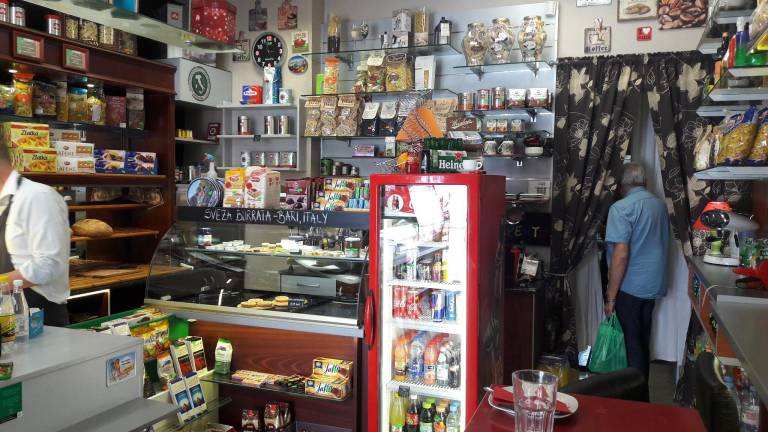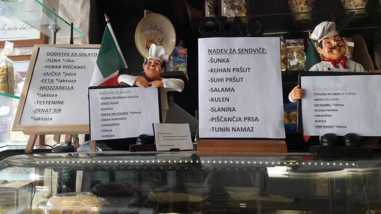 Pozdravil nas je prijazen lastnik Mario Raškaj, medtem ko je nekemu gospodu opisoval sladico, ki mu jo je pravkar postregel. Nismo uspeli našteti vseh različnih vrst testenin, primernih za prilogo, peko ali nadeve, ko je prodajalec hitro povedal: »Škoda, zdaj jih več nimam toliko, kot sem jih imel včasih.«