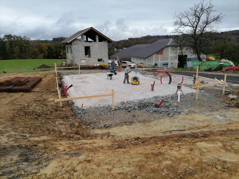 Dela na hiši že potekajo, tako je bila konec prejšnjega tedna končana prva etaža oziroma pritličje hiše. Pri tem upajo, da bo vreme vztrajalo še naprej, saj želijo z gradbenimi deli nadaljevati in čim prej bivališče pokriti s streho.