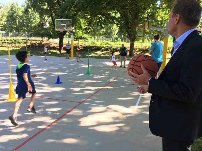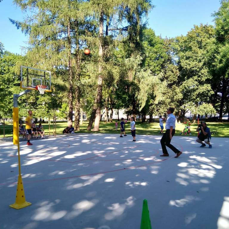 Podžupan Samo Peter Medved je danes uradno odprl košarkarsko igrišče v severnem delu Magdalenskega parka.