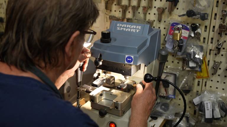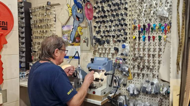 Merc v svoji delavnici izvaja vsa popravila čevljev, zadrg na torbah, škornjih, brusi tudi nože in škarje ter izdeluje ključe.