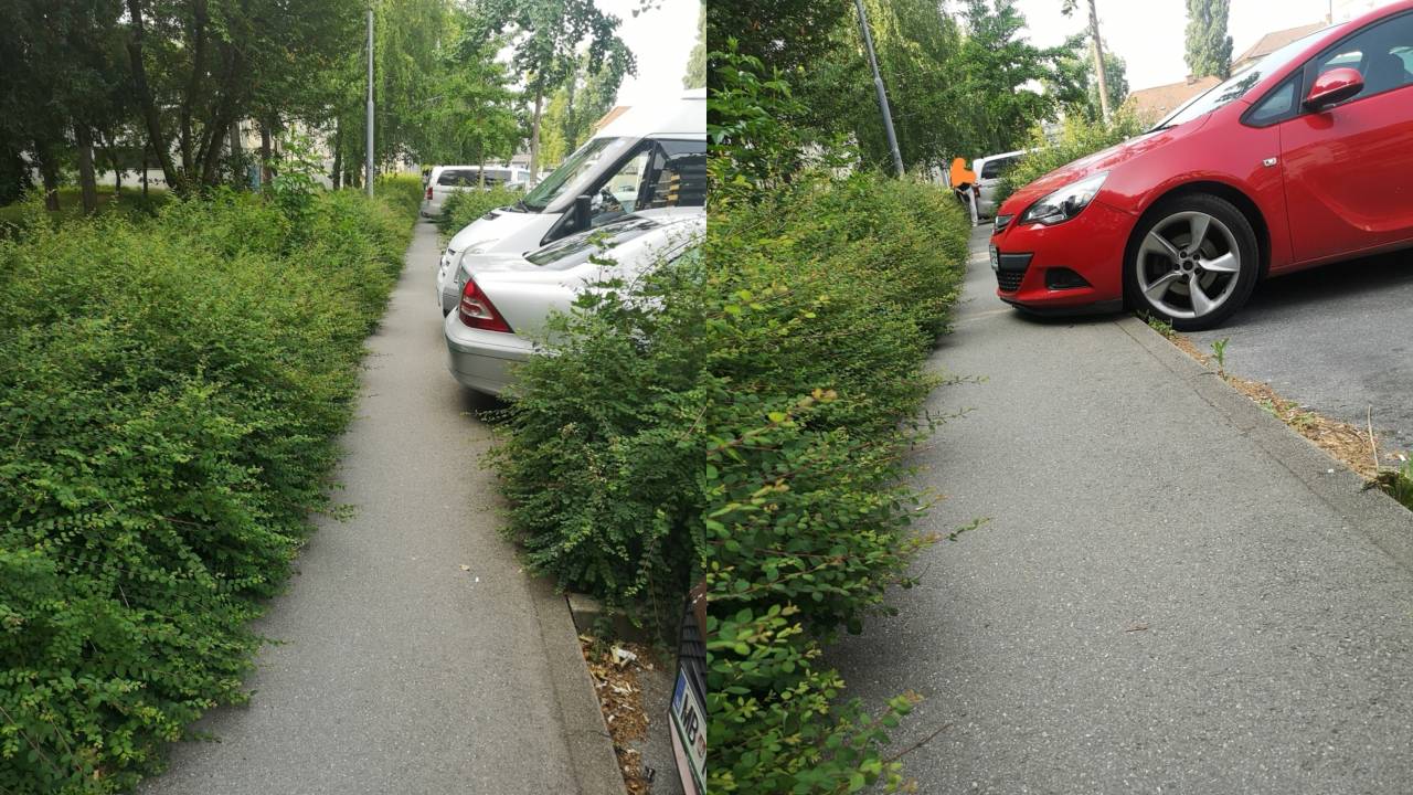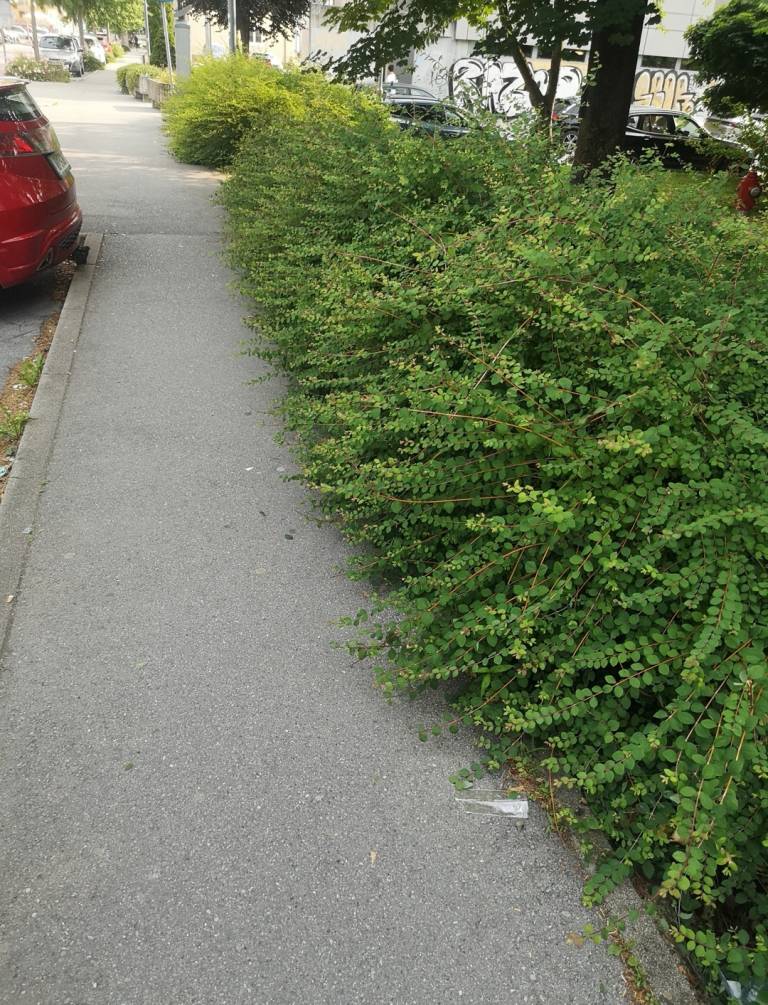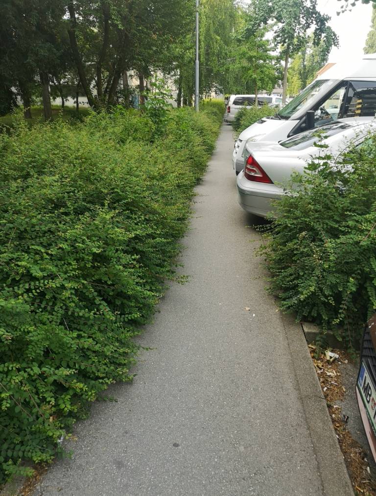 »Na Žitni ulici, med Srednjo zdravstveno šolo in Ulico pariške komune, so grmovnice tako razrasle, da za pešce skoraj ni več prostora.