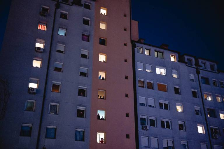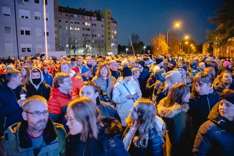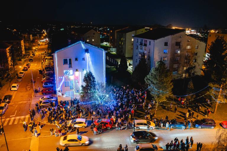 Pred blokom se je zbrala ogromna množica ljudi, ki jih je navdušila Slavkova strast do okraševanja in so ga z obiskom prišli podpreti: