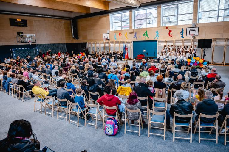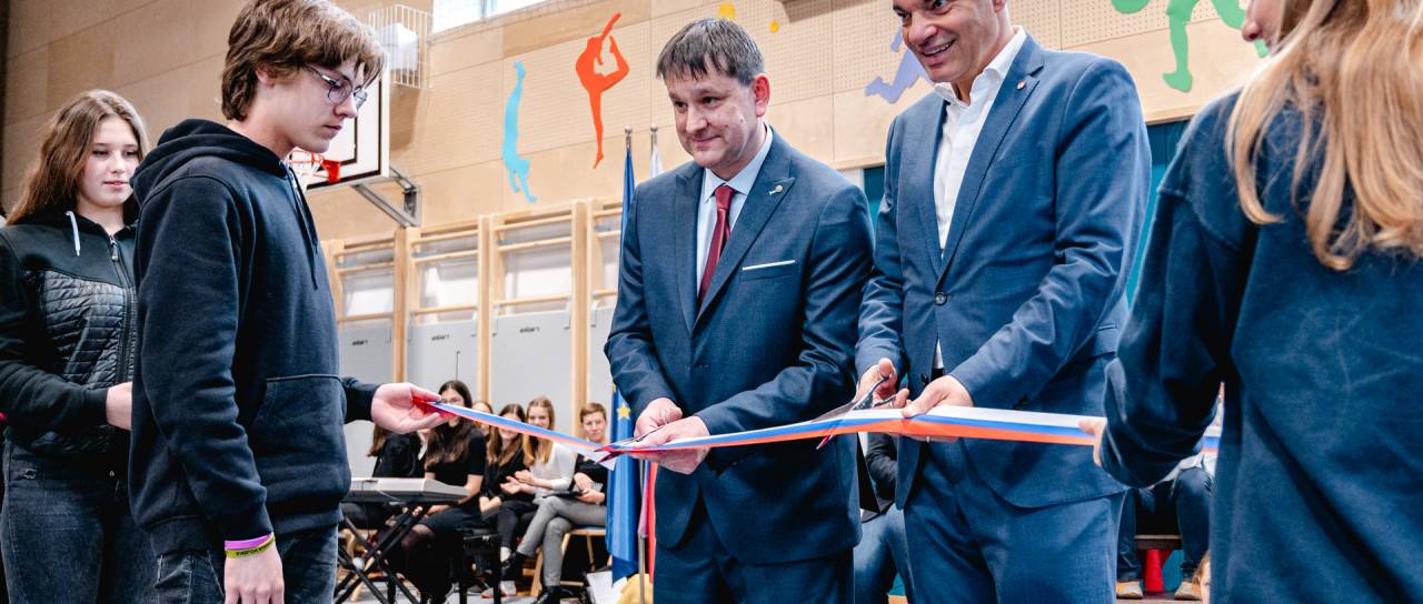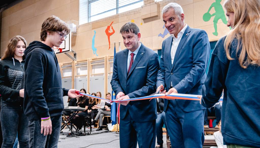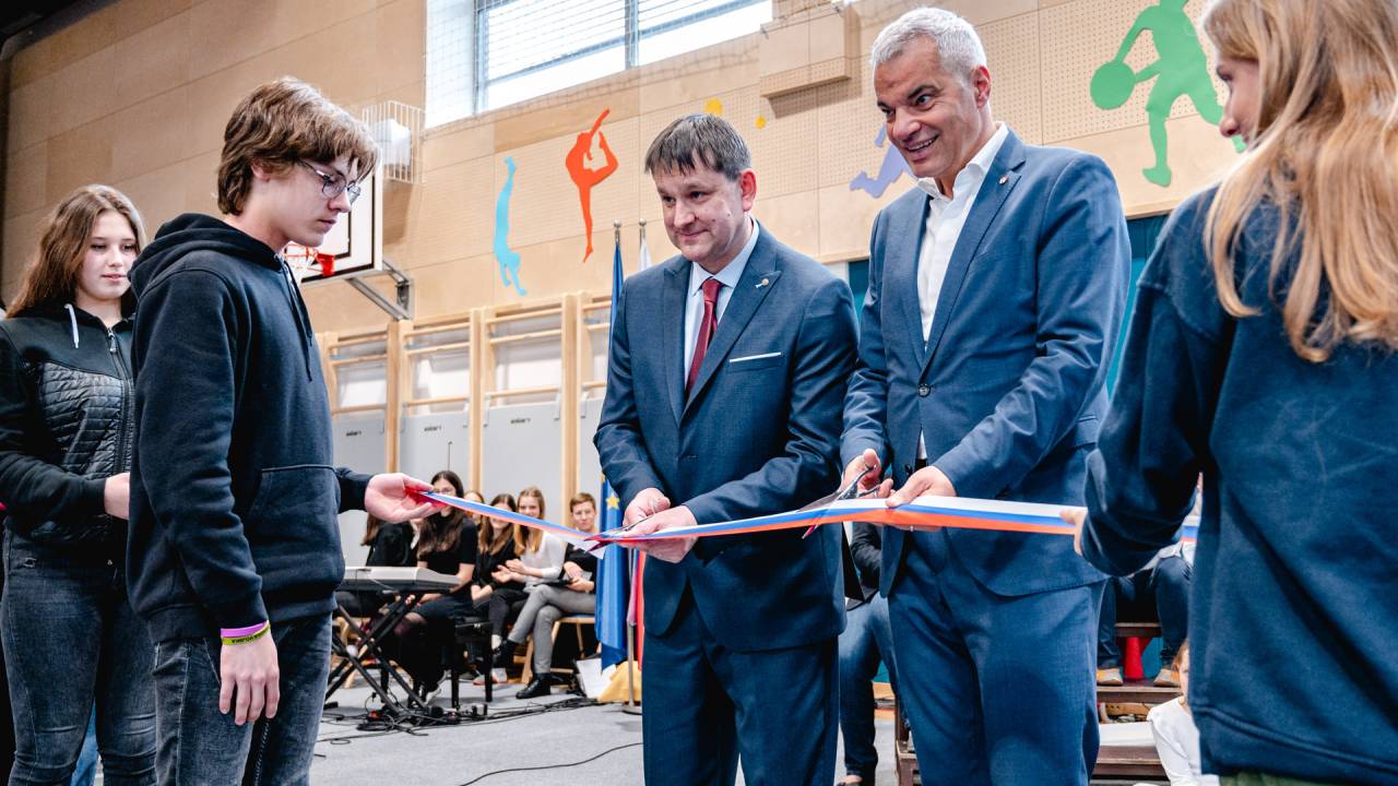 Učenci Osnovne šole Franceta Prešerna Maribor se veselijo odprtja nove telovadnice in večnamenske dvorane. Eno največjih naložb na področju osnovnih šol v mariborski občini v zadnjih letih slovesno so slovesno odprli danes popoldne.