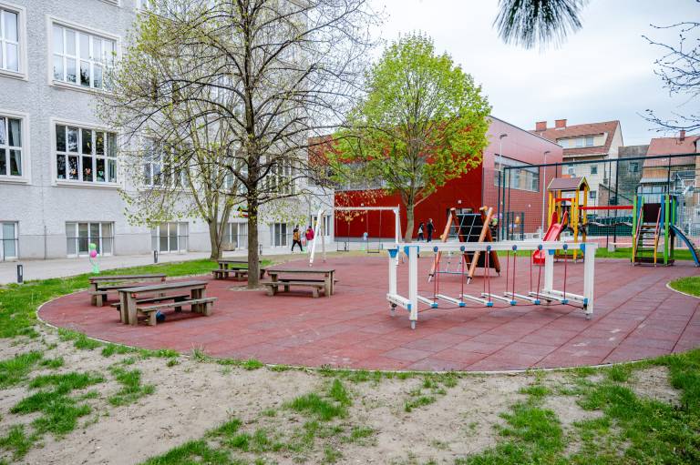 Dodatno so dobili večnamensko dvorano s plezalno steno, dva prostora za shranjevanje športne opreme, v okviru naložbe so v starem delu šole uredili tudi nove garderobe, kabinet za učitelje športa, zunaj pa igrišče, igralne površine z umetno podlago, skakališče za skok v daljino in pokriti prostor za kolesa.